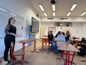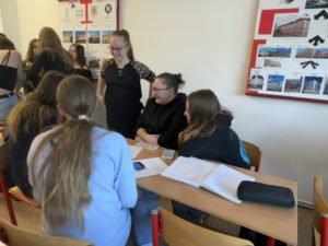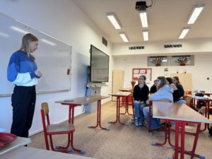 Žáci 1. ročníku oboru veřejnosprávní činnost si v předmětu právo vyzkoušeli, jaké to je být poslancem a mít zákonodárnou moc. Ve skupinách navrhli různé podoby zákona o užívání mobilních telefonů ve škole. Během tří čtení pak už společně tvořili finální podobu zákona, dávali pozměňovací návrhy a připomínky. Poté proběhlo hlasování, v němž nový zákona fiktivní Poslanecká sněmovna prostou většinou přijala. Chcete-li se s jejich zákonem seznámit, klikněte na tento odkaz: PRA – Zákon o používání mobilních zařízení na školách – pozměněná podoba