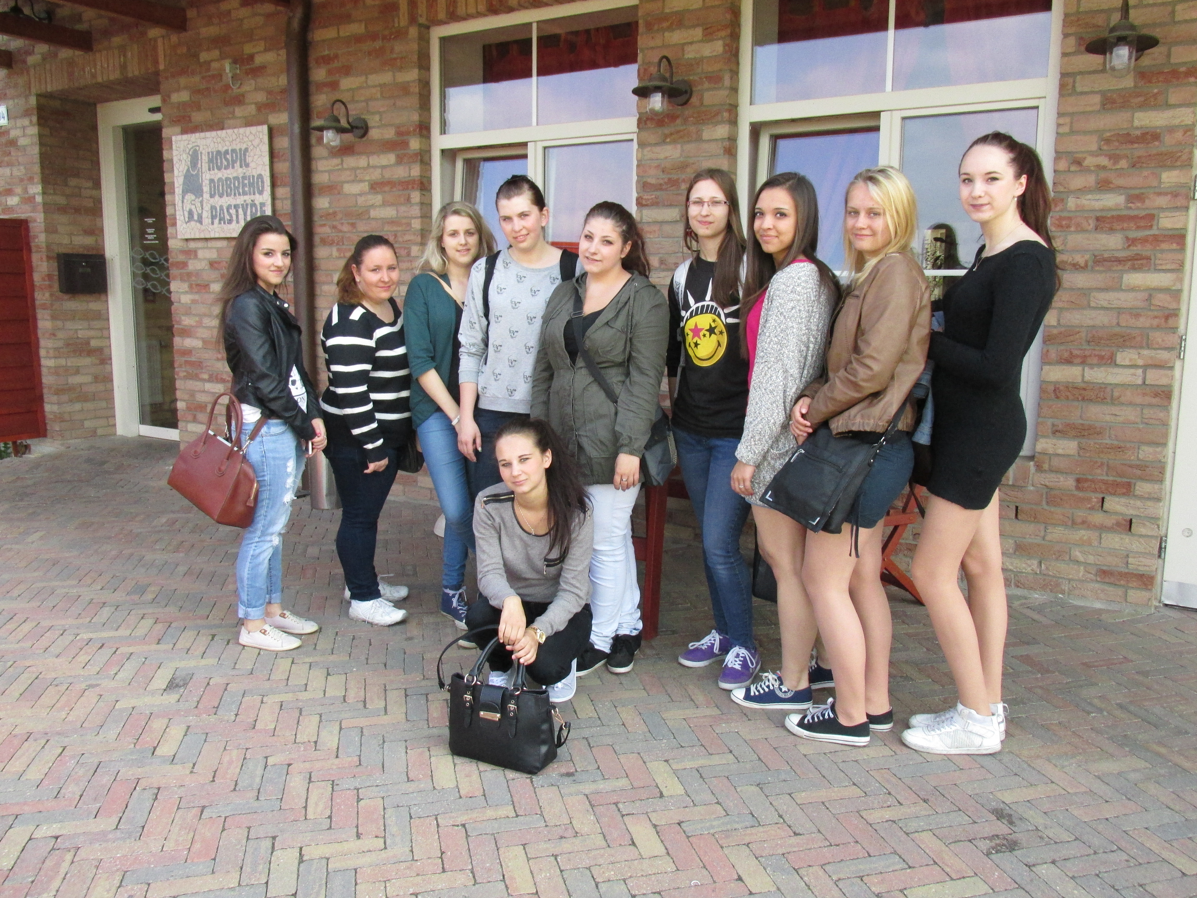 13. května 2015 navštívily žákyně třídy 3.B oboru Sociální činnost hospic Dobrého pastýře v Čerčanech. Zařízení nabízí lůžkovou péči klientům v terminální fázi nevyléčitelné nemoci (nejčastěji onkologické onemocnění), má mobilní jednotku domácí hospicové péče, poskytuje zdravotně-sociální služby a asistenční služby lidem se sníženou soběstačností. Žákyně zhlédly krátký dokument o zařízení, dozvěděly se informace ohledně vzniku a realizace projektu hospice a měly možnost si prohlédnout pokoje, denní stacionář, kavárnu, knihovnu i útulnou zahradu.