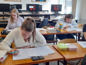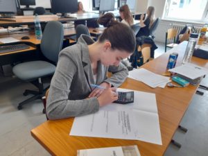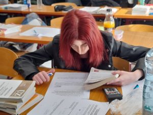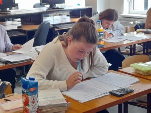 Ve středu 26. dubna 2023 vstupovali studenti oboru veřejnosprávní činnost do školy s velkými obavami. Čekala je totiž pětihodinová odborná maturitní písemná práce z práva a veřejné správy. Jejich úkolem bylo zvládnout jak teoretické znalosti z oblasti ústavního, občanského, rodinného, pracovního, obchodního, trestního, správního a mezinárodního práva, tak jejich aplikaci do praxe a orientace v právních předpisech a programu Epis. Prokázali znalost odborných pojmů, působnosti orgánů i průběhu řízení. Řešili konkrétní příklady ze správní praxe či soudní síně. Součástí práce bylo napsání usnesení, příkazní smlouvy a žaloby. Poradit si museli též s výpočty z oblasti pracovního práva a správy sociálního zabezpečení. Práce to vůbec nebyla jednoduchá. Všichni odcházeli úplně vyčerpáni, ale s dobrým pocitem, že to snad zvládli.